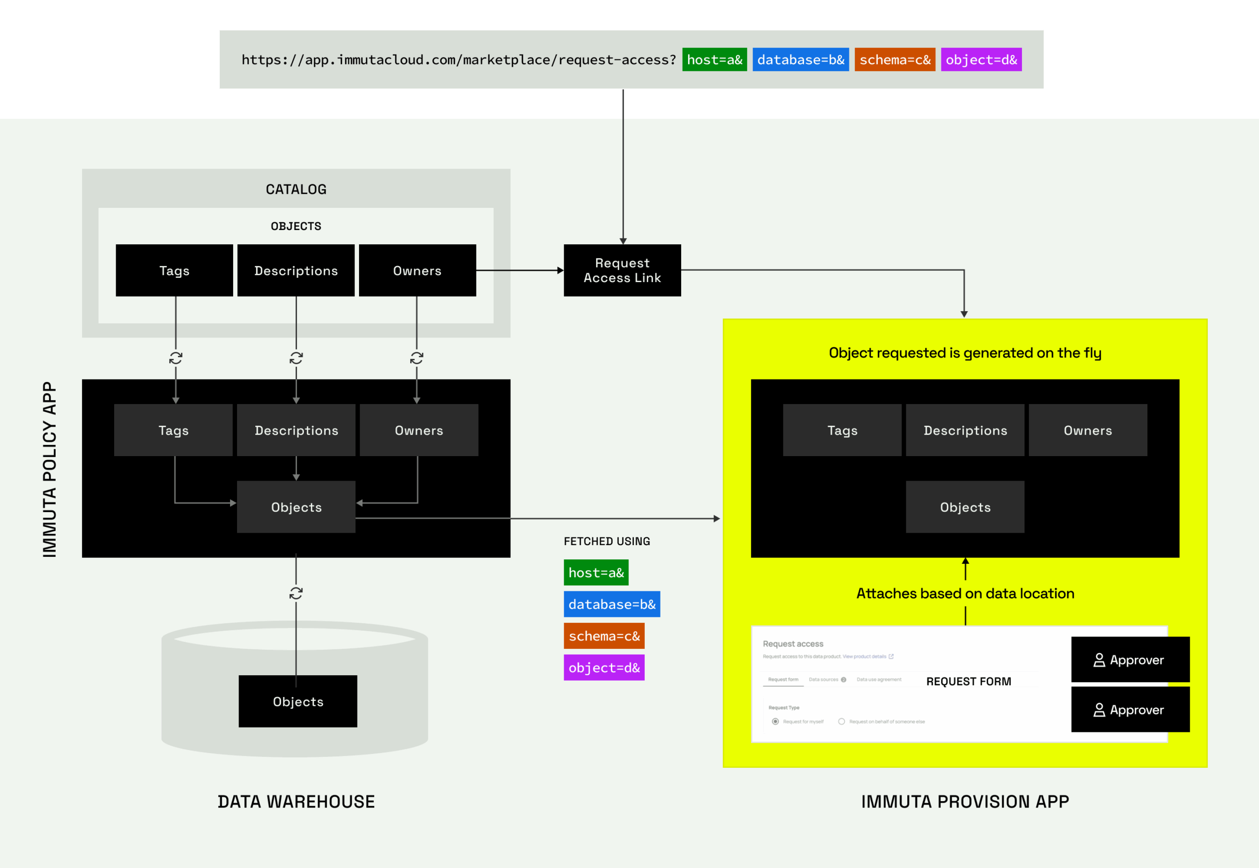 Whether your data consumers live in a marketplace, a catalog, or a data platform itself, Immuta now ensures that the request, approval, and provisioning process just works.