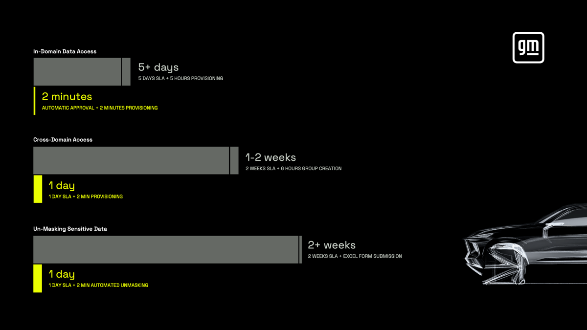 - Accelerated access: Customers like General Motors have already seen access times drop from three to four weeks down to two minutes.